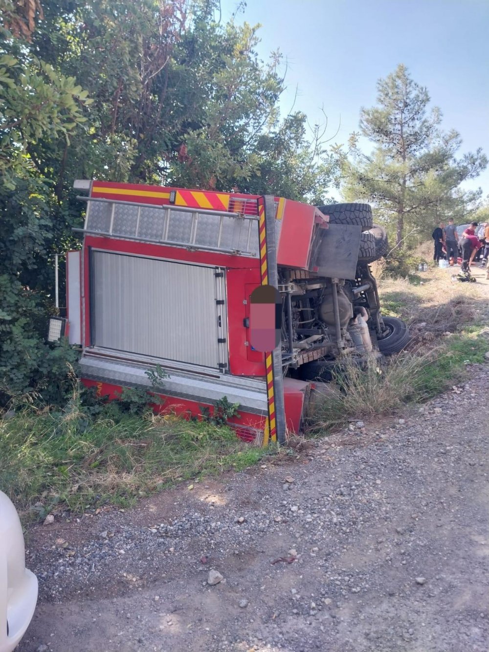 Boğazköy Bölgesinde, alınan bir yangın ihbarını nedeniyle bölgeye giden arazöz yangın söndürme aracı ile yolda geri dönüş yapıldığı esnada, araç tekerinin yolun sol tarafında bulunan yaklaşık 2 metre derinliğindeki çukura düşmesi sonucu, araç sol yan tarafı üzerine devrildi.