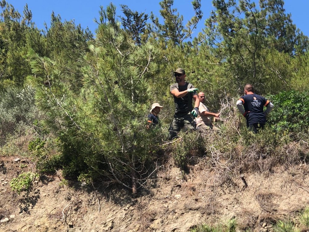 Mersinlik bölgesinde çıkan ve geniş bir alana yayılan yangının sıçramasını önlemek için bölgedeki ekipler ağaçları kesiyor.