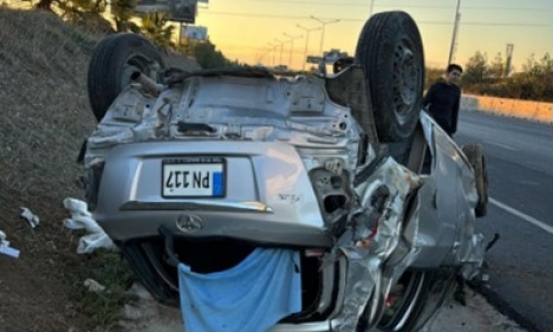 Toprak sete çarpan araç, su kanalı içerisinde tavanı üzerine devrildi.