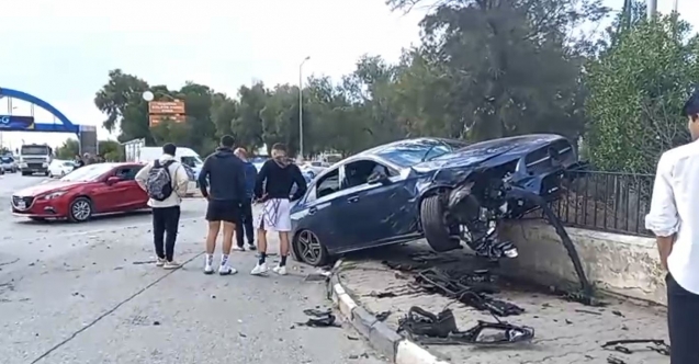 Çarpmanın etkisiyle UL 998 plakalı araç, kontrolsüzce yoluna devam edip yolun solundan çıkarak kaldırıma, çevre duvarına ve demir korkuluklara çarparak durabildi.
