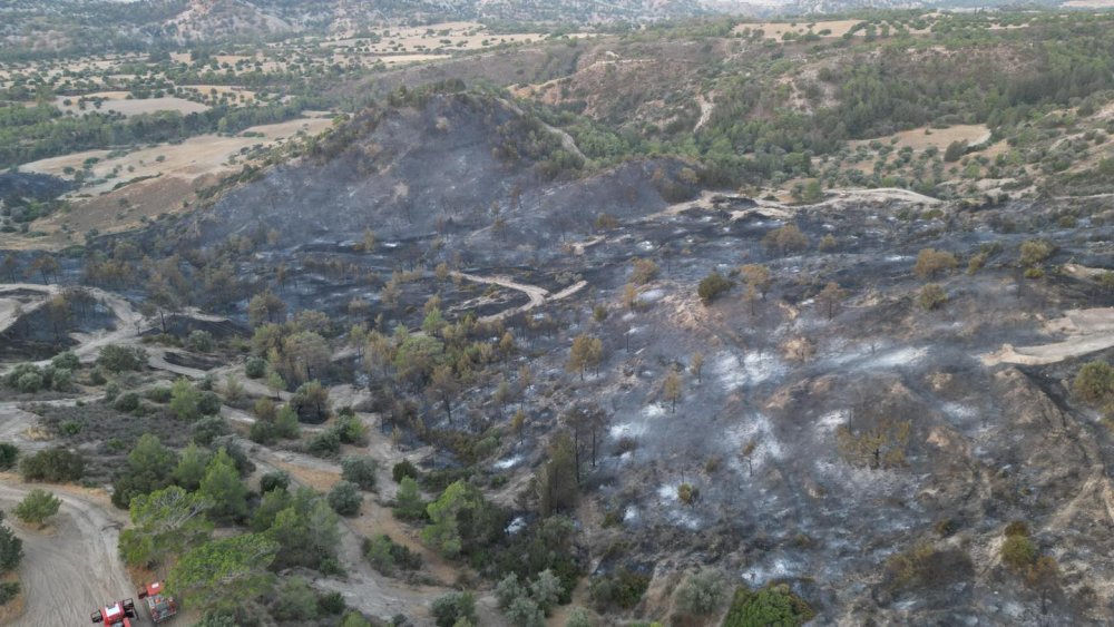 Bölgede yapılan detaylı incelemede, yaklaşık bin dönümlük alan içerisinde bulunan maki bitki örtüsü, muhtelif sayıda selvi, harup, zeytin ve çam ağaçları ile 15 dönüm arpa, 25 dönüm buğday ve sekiz dönümlük alan içerisindeki 50 adet limon ile dört adet zeytin ağaçlarının yanarak zarar gördüğü tespit edildi.