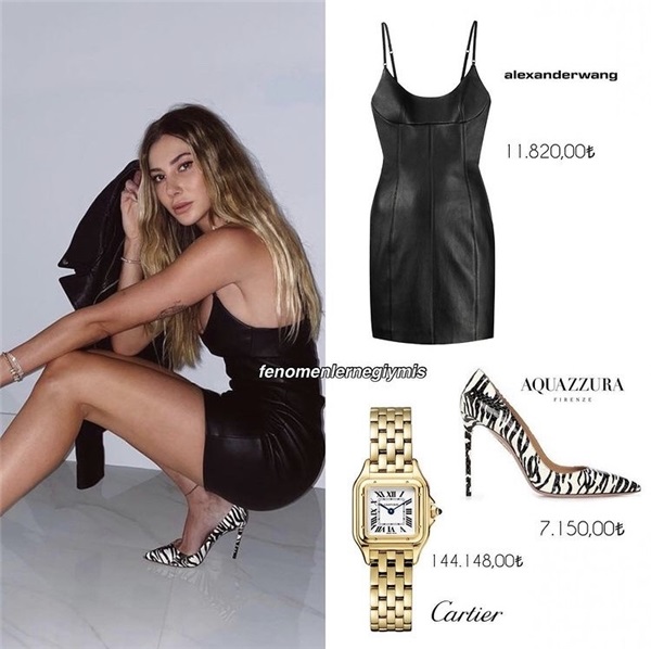 3 milyon takipçisinin bulunduğu Instagram hesabından son olarak siyah süper mini elbiseli pozlarını paylaşan Şeyma'nın kombini adeta servet değerinde. Instagram hesabı 'fenomenlernegiymiş'in yaptığı araştırma sonrası Subaşı'nın saatin 144 bin TL, askılı elbisesinin 11 bin 820 TL ve topuklu ayakkabısının 7 bin 150 TL olduğu ortaya çıktı. Ünlü ismin kombinin toplamı ise tamı tamına 151 bin 298 TL.