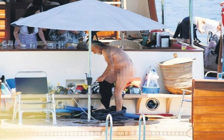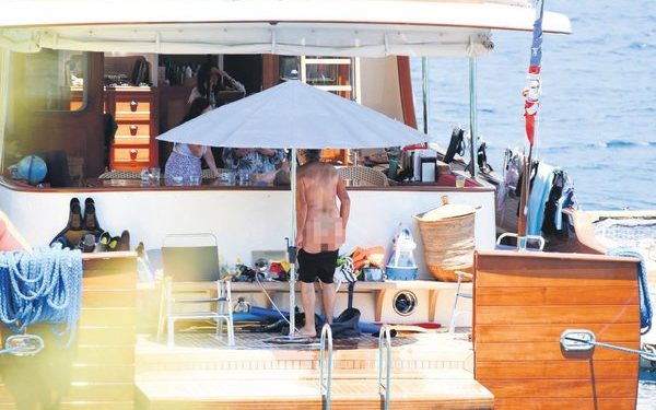 Uzunca bir deniz keyfi yapan Sinan Çetin, kurulanmak için yata çıktı ve yanındakilere aldırış etmeden altını indiriverdi! Ve mayosunu değiştirdi.