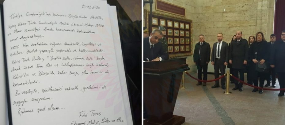 Başkan Vekili Fikri Toros, önce Atatürk’ün mozolesine çelenk koydu. Saygı duruşunun ardından Misak-ı Milli Kulesi’ne geçerek Anıtkabir Özel Defteri’ni de imzaladı.