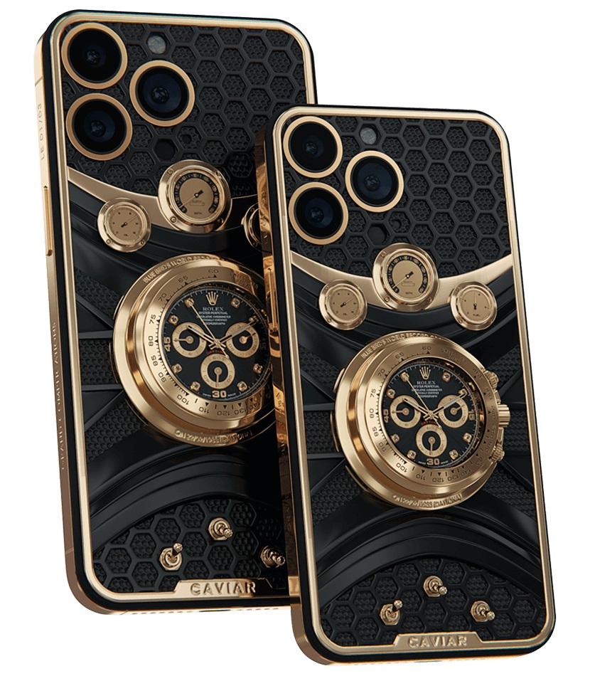 Dünyanın en pahalı telefonlarından birini yeniden yorumlayan Cavier, iPhone 14 Pro Max’in arkasına Rolex saat yerleştirdi. Rolex Cosmograph Dayton saate sahip ve elmaslarla süslü süper lüks iPhone 14 Pro Max bu hafta tanıtıldı.