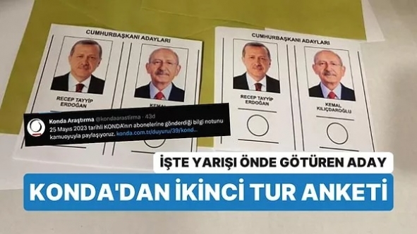 Konda Araştırma İkinci Tur Seçim Anketini Yayımladı. Ankete göre Cumhurbaşkanı Erdoğan yüzde 52,7, Kılıçdaroğlu yüzde 47,3 oy alıyor