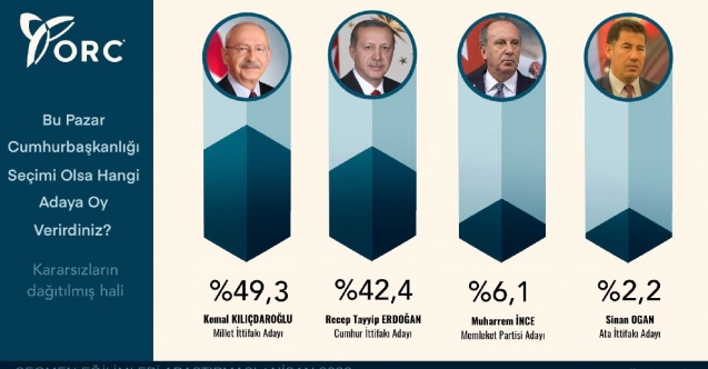 Alınan yanıtlara göre (kararsızlar dağıtıldıktan sonra) adayların oy oranları şöyle oldu: